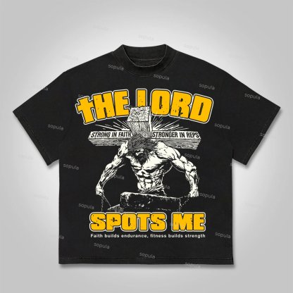 Sopula The Lord Spots Me Vintage God Gym Graphics Cotton T-Shirt