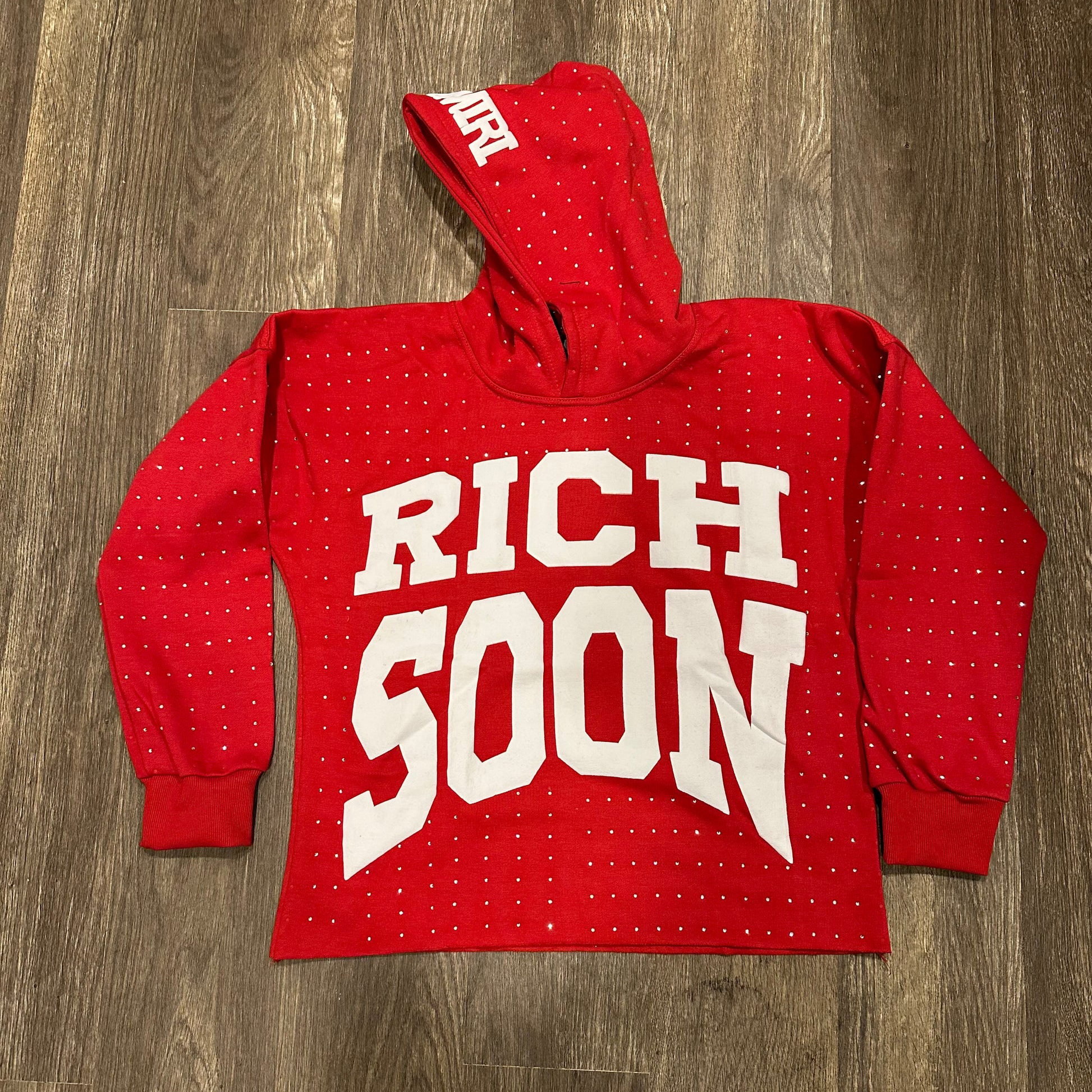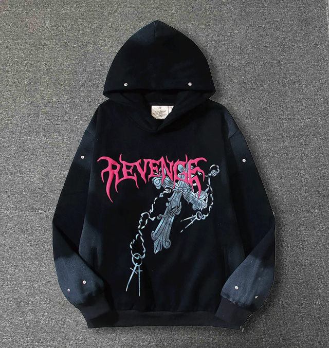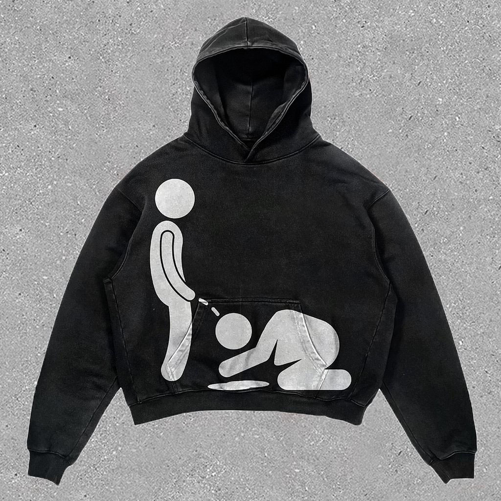 Personalized retro irregular hem print hoodie